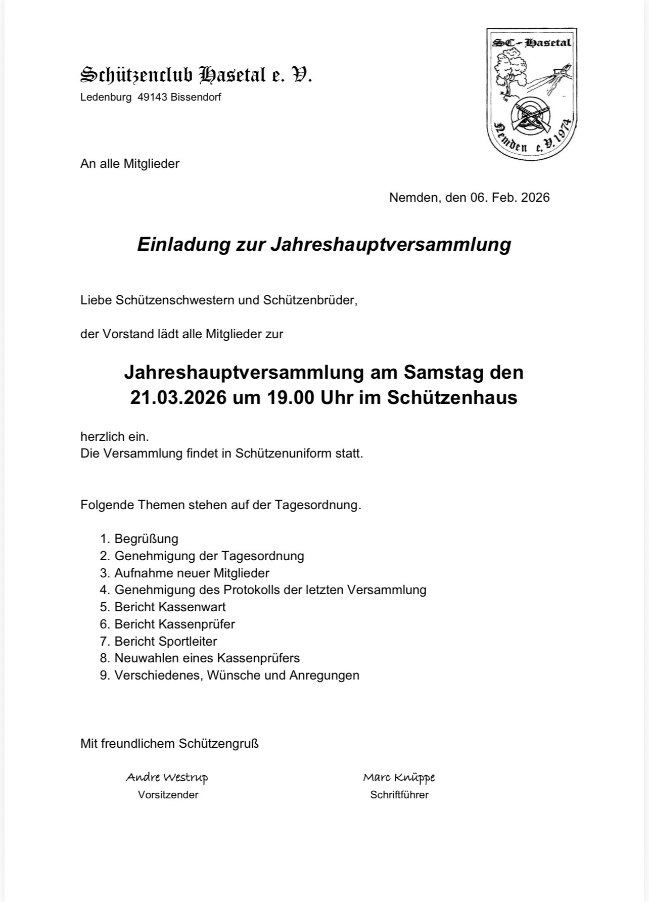Seit der Gründung im Jahr 1974 steht der SC Hasetal für mehr als nur zielsicheres Schießen – wir sind ein Ort der Gemeinschaft, des Respekts und des gelebten Miteinanders. Ob Jung oder Alt, Neumitglied oder alter Hase: Bei uns zählt nicht nur der Treffer ins Schwarze, sondern auch das Herz am rechten Fleck.